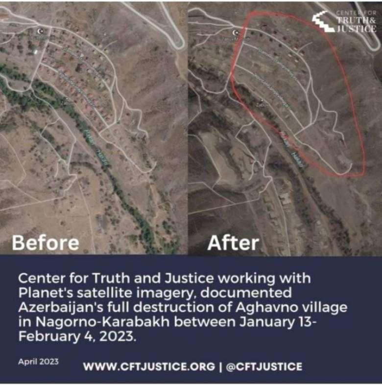 Planet-ի արբանյակային պատկերները փաստագրել են՝ 2023 թվականի հունվարի 13-ից փետրվարի 4-ն ընկած ժամանակահատվածում Ադրբեջանը Լեռնային Ղարաբաղի Աղավնո գյուղն ամբողջությամբ ոչնչացրել է: