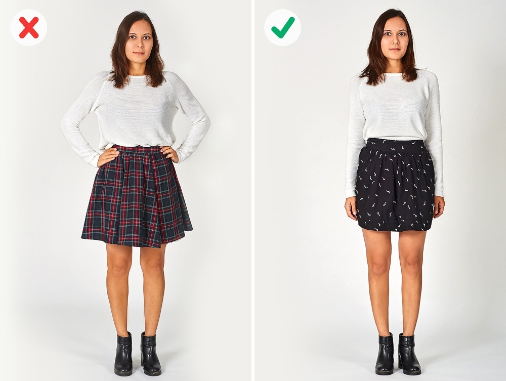 Խոշոր պրինտը մարմինն ավելի գեր է ցույց տալիս, իսկ սանդալները կարճացնում են ոտքերը: